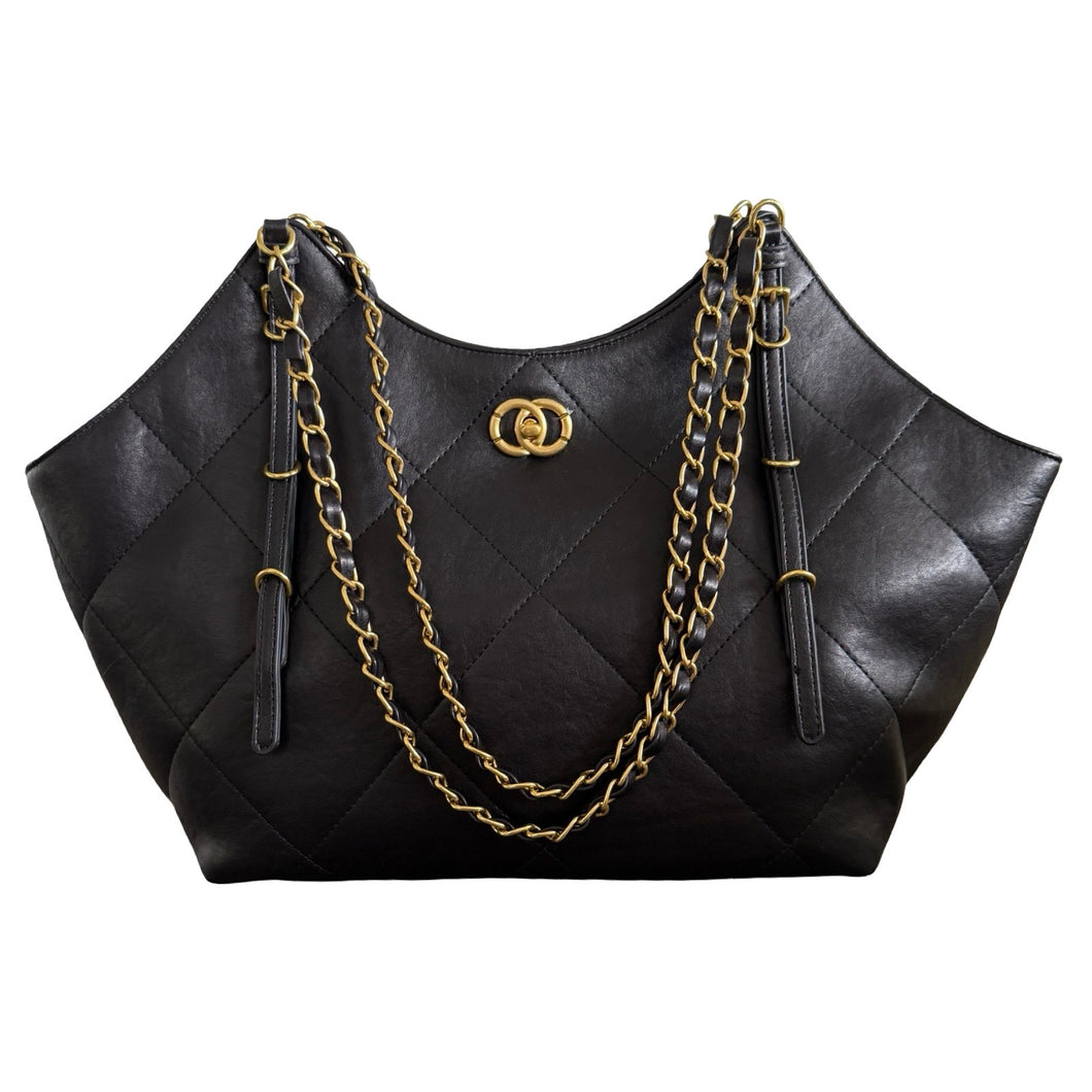 Tan Quilted Chain Handle Shopper