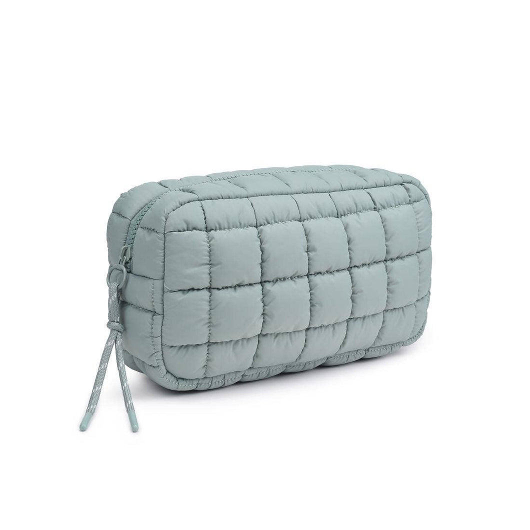 Sage Quilted Puffer Nylon Cosmetic / Toiletry Bag