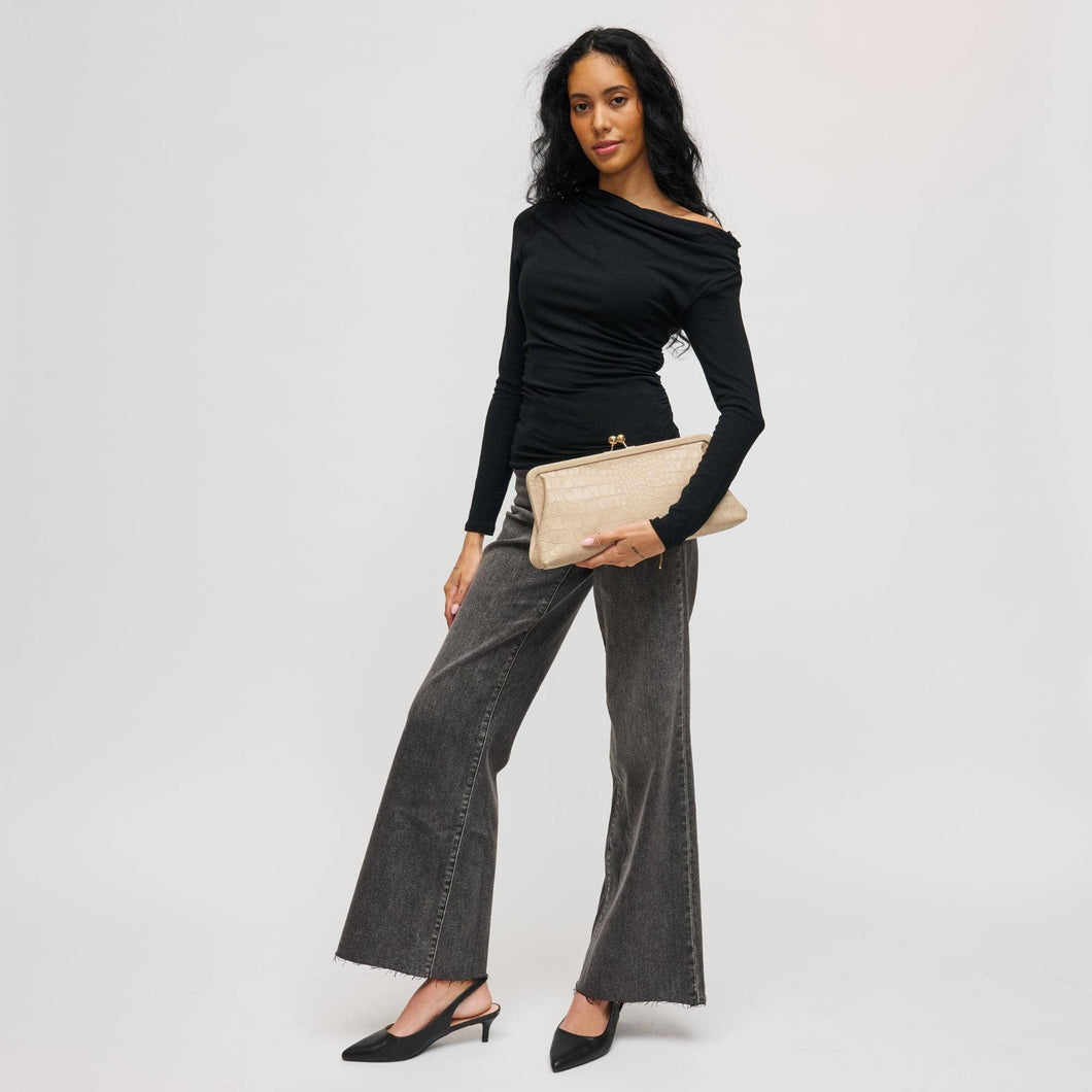 Taupe Embossed Croc Oversized Clutch *