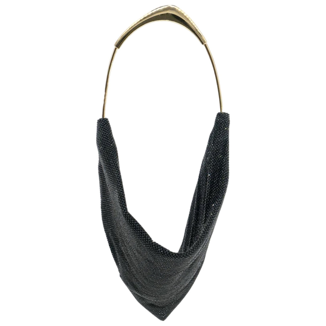 Gunmetal Sequin Mesh Bag with Antique Gold Handle