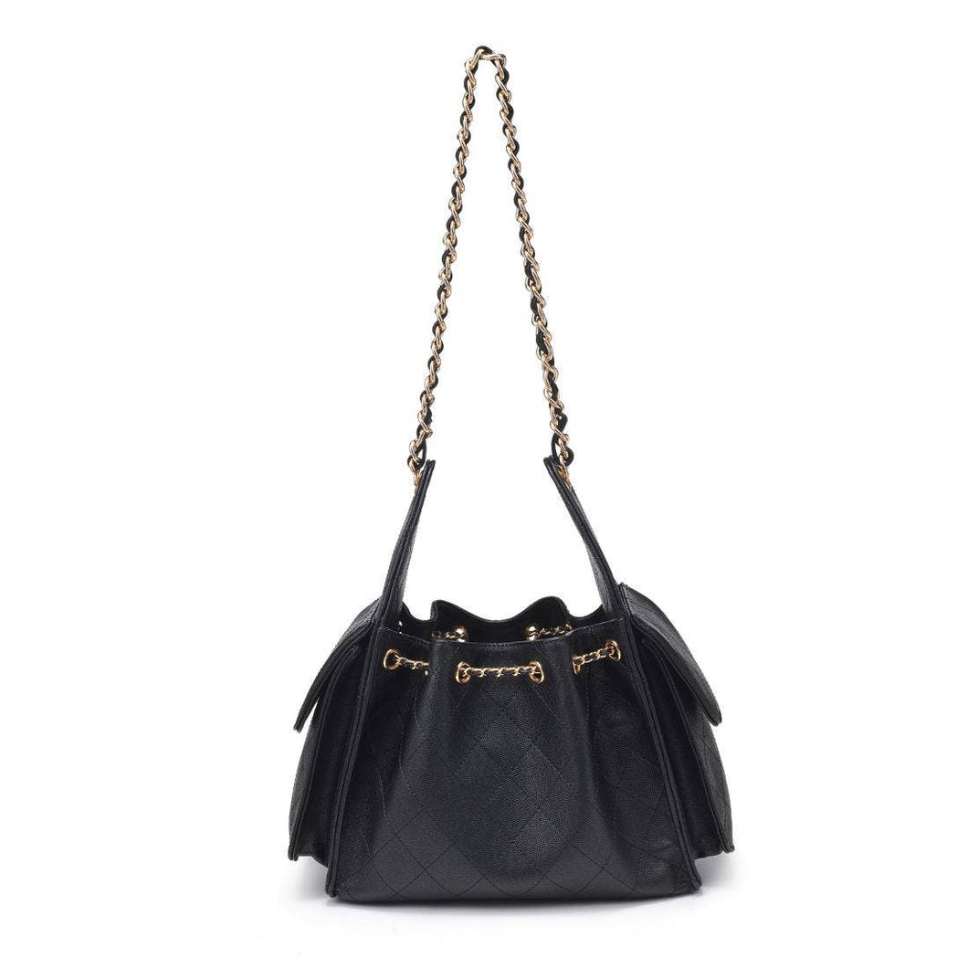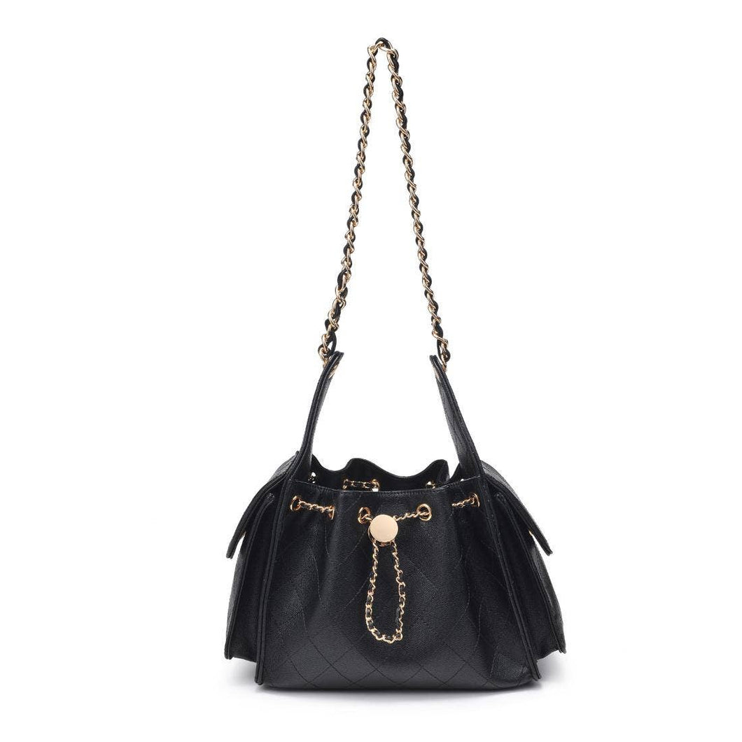 Textured Black Mini Hobo with Drawstring Closure and Vegan Leather Detailed Chain Handle
