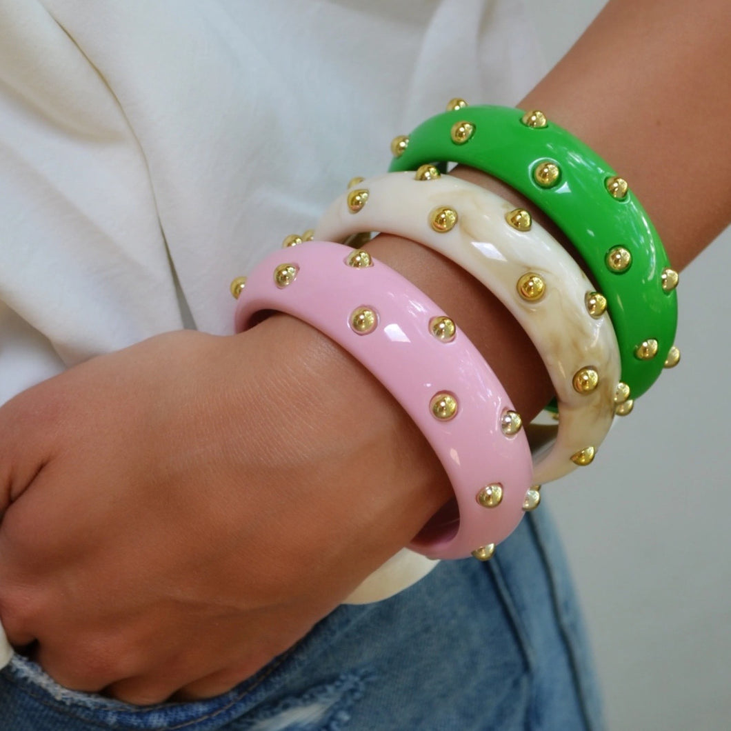 3/4" Ivory Lucite Bangle with Gold Plated Stud Detail