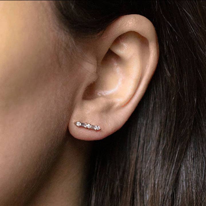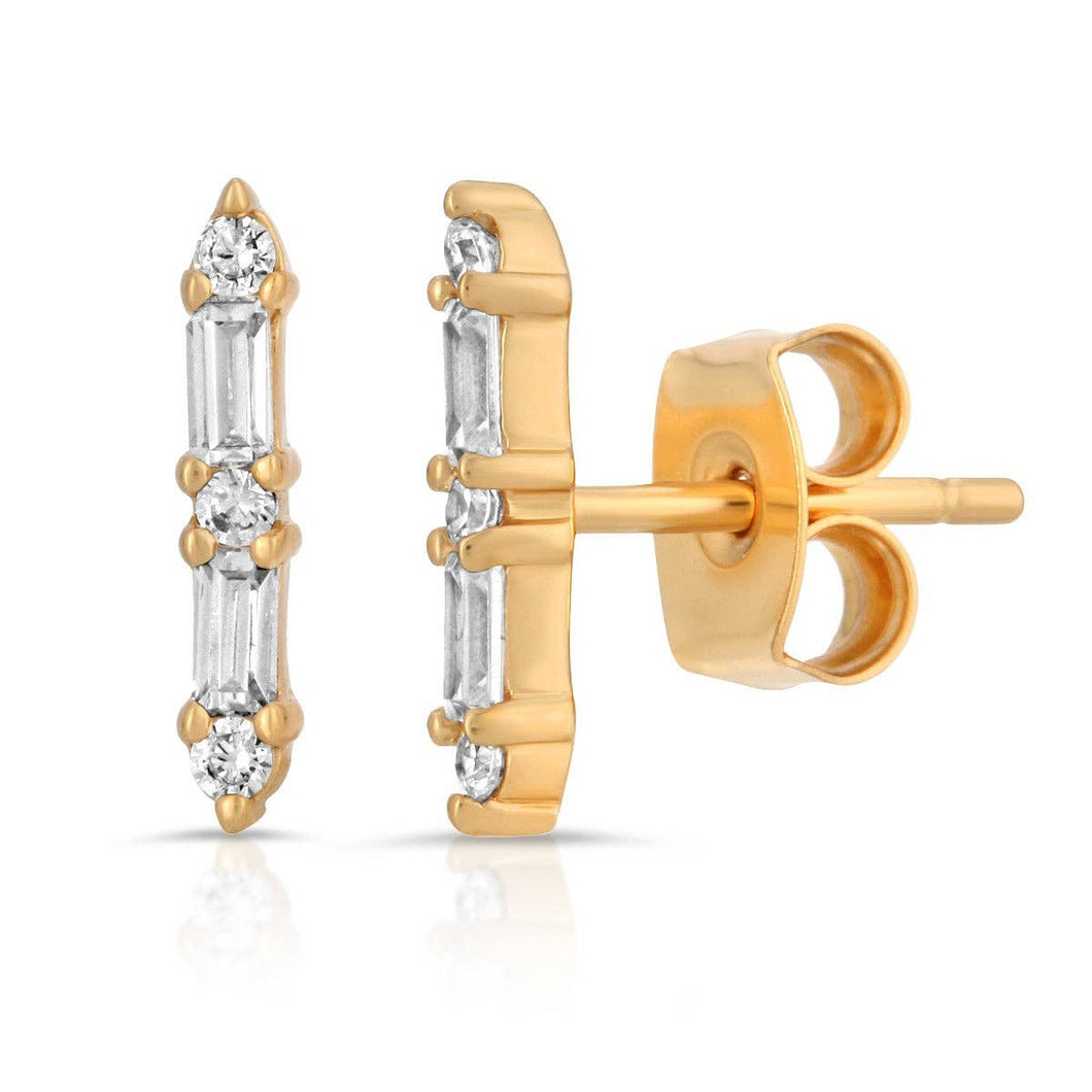 .45 14K Gold Plate & Baguette Bar Stud