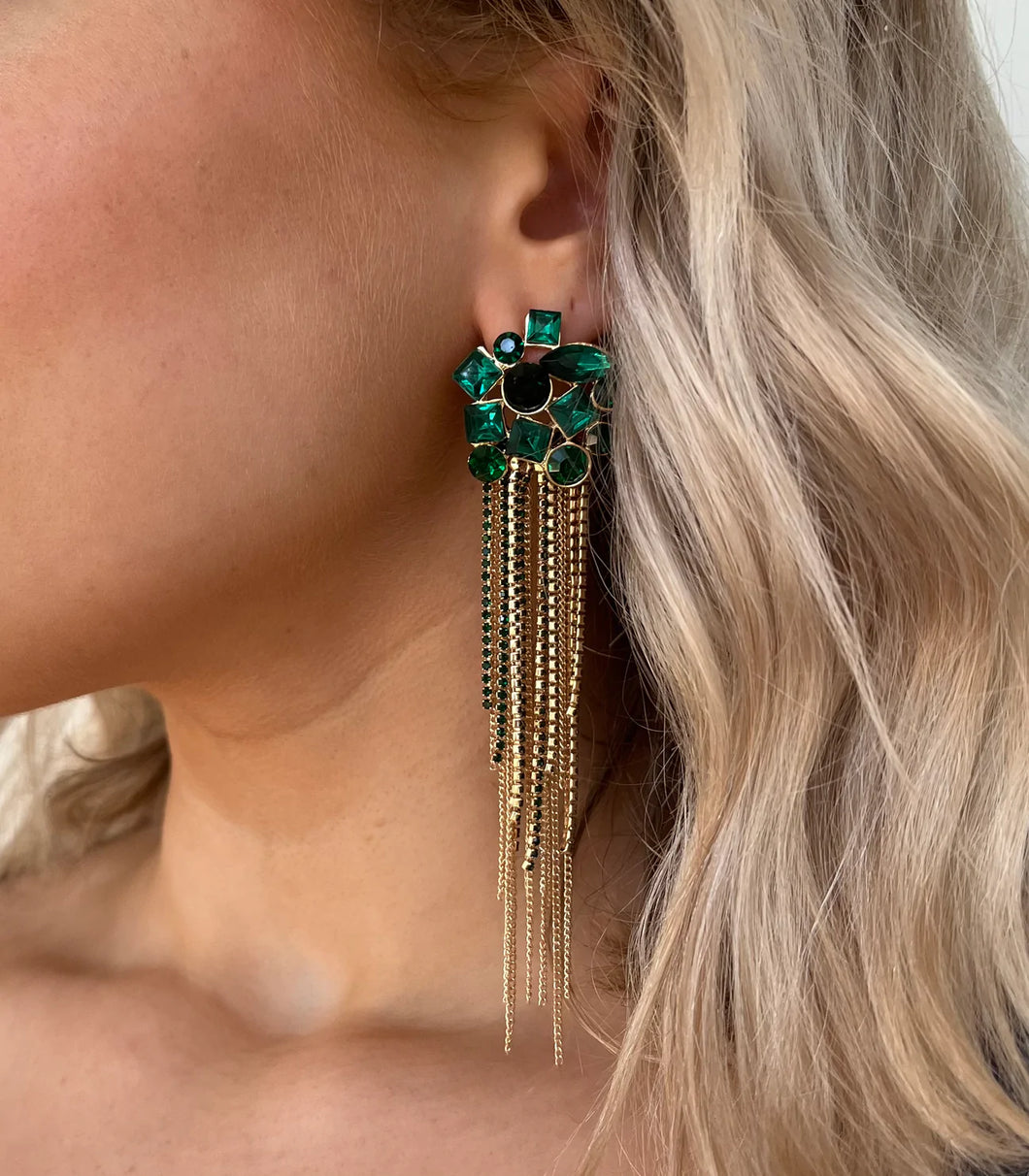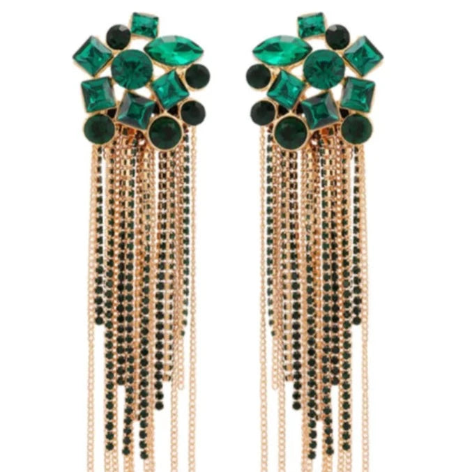 3.5" Clear Swarovski "Bouquet" with Gunmetal and CZ Chain Fringe
