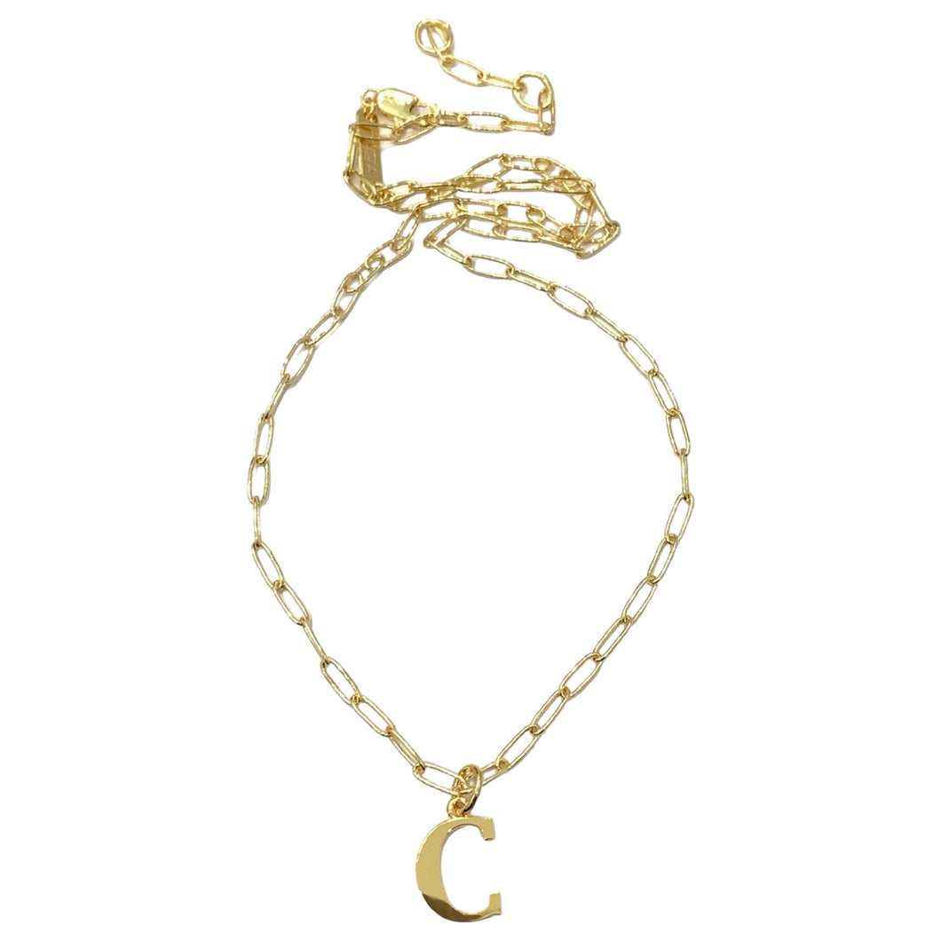 16-18" Gold Plated Paperclip Chain with Initial Drop