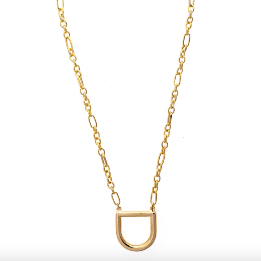 16" 22K Gold Plated Brass Mixed Chain with D Ring Pendant