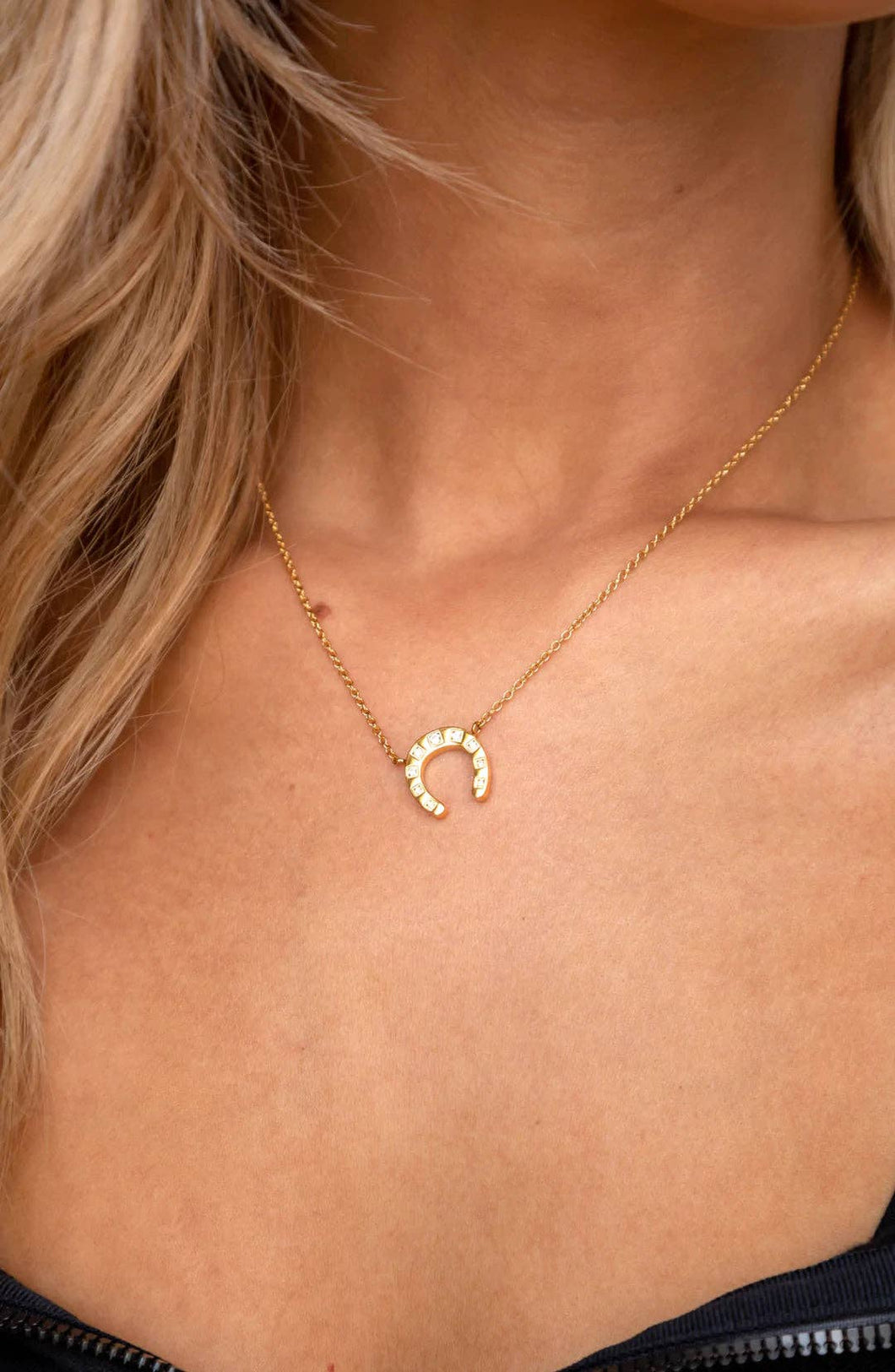 16” 18K Gold Plated Chain with CZ Detailed Horseshoe Pendant