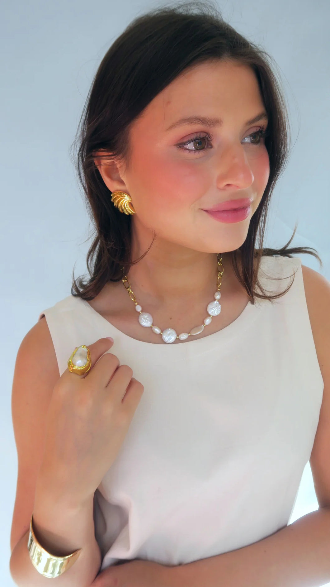 18K Gold Plated Stainless Encapsulated Sea Pearl Ring