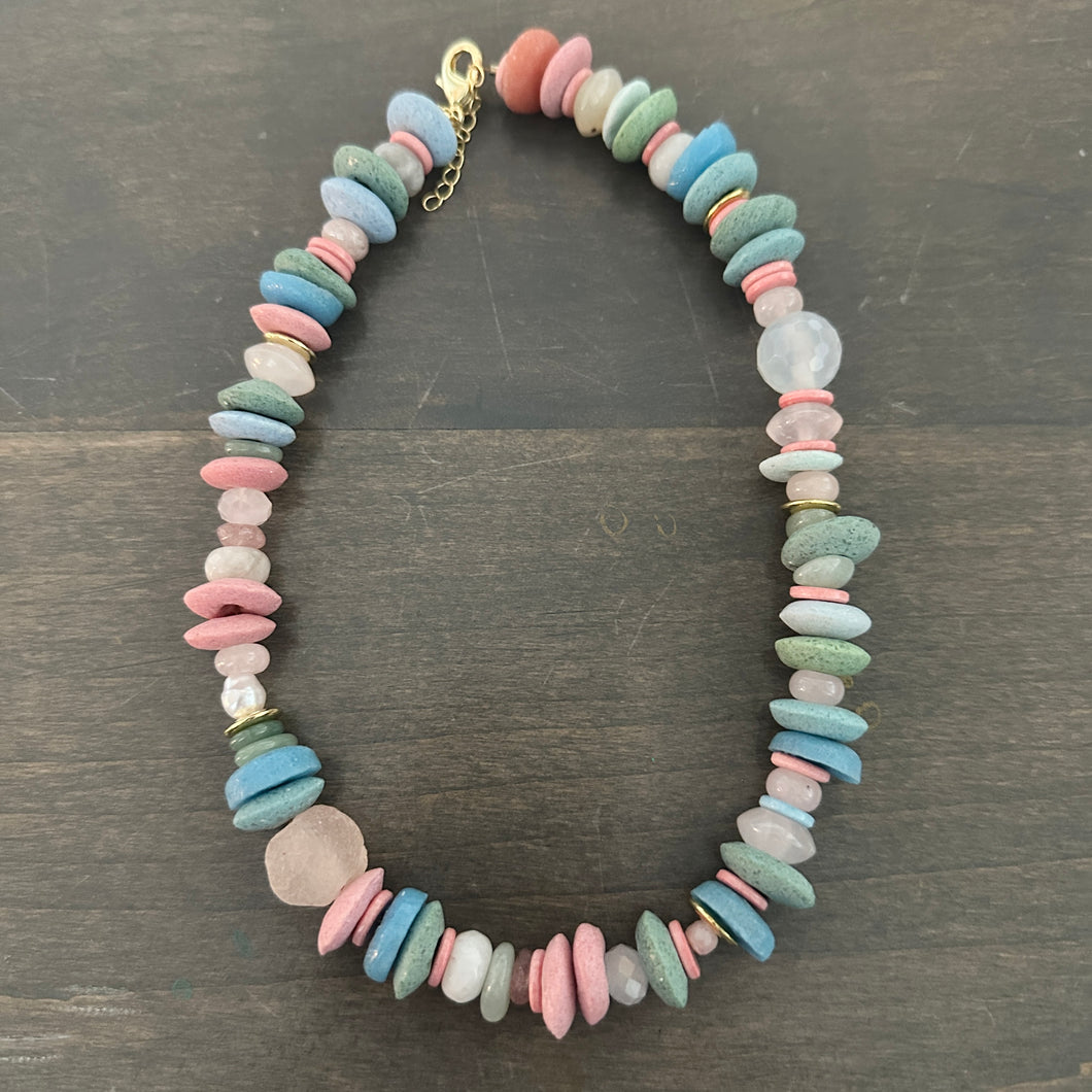 15-17" Pastel Mix Ashanti Glass, Sea Glass & Pearl Necklace